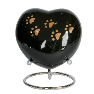 Metal Dog Urns for Ashes – Black Brass Pet Urns with Gold Paw Prints