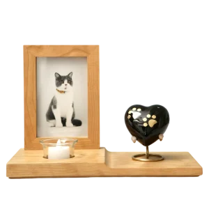 Ceramic Pet Urn for Ashes – Black Memorial Urn with Metal Stand