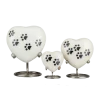 Shop handcrafted heart-shaped urns for ashes made of solid brass with a paw print design. A loving pet memorial keepsake available in white or slate enamel with pewter accents.