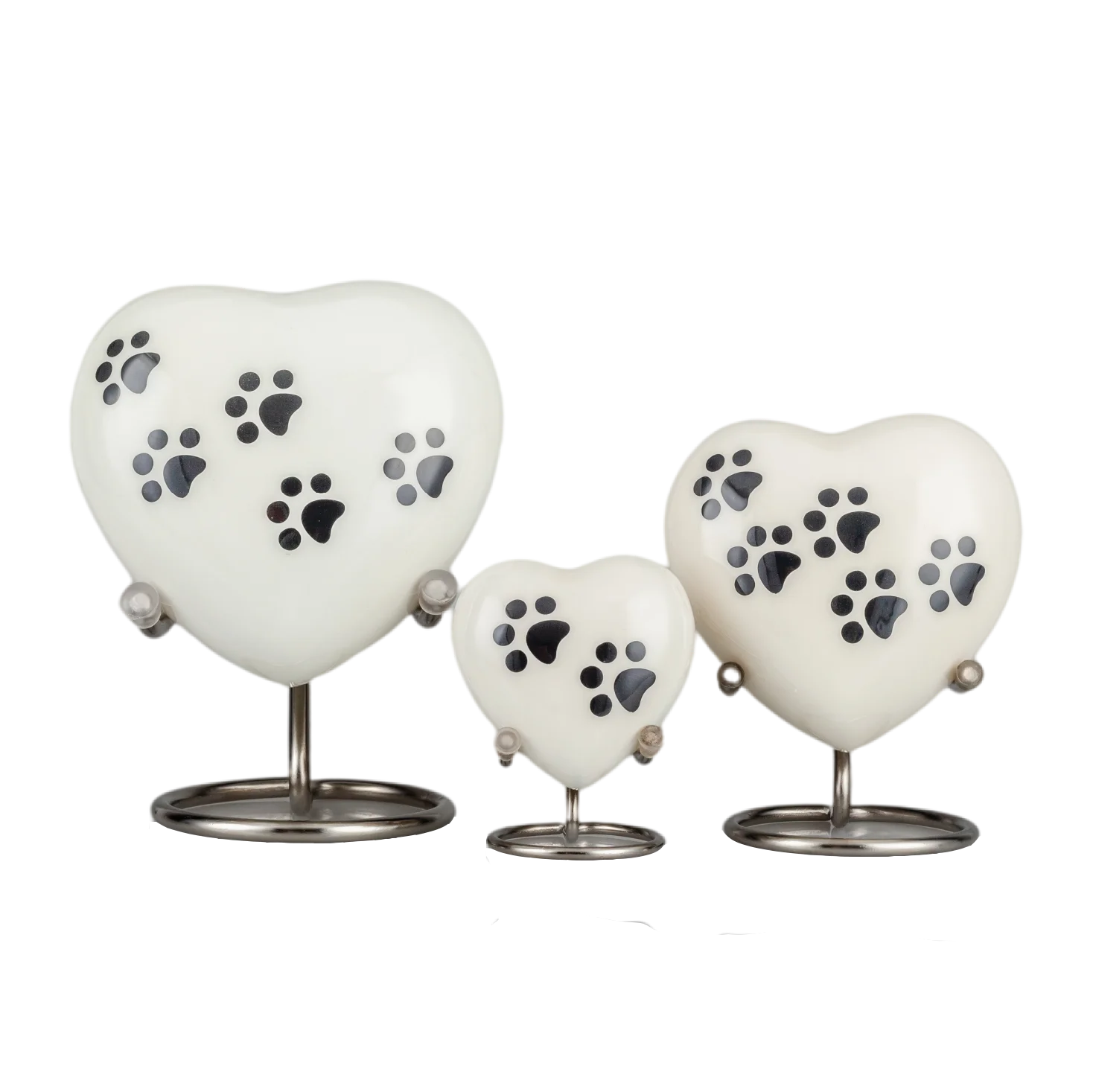 White Heart-Shaped Urns for Ashes with Paw Print – Handcrafted Solid Brass Pet Memorial
